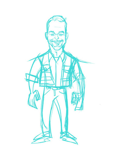 I got this call awhile back from a big church out West who were doing a book and video series for kids. The art director liked my cartoony character design stuff, and hired me to do a toon of their pastor, who would be the star of the series. They were going to animate it in FLASH, though, and I don’t do that program. And I didn’t have to time to learn it in the short deadline they gave me. So, I had to do some extra “parts” for them to animate (the A.D. knows FLASH himself, so it was cool)