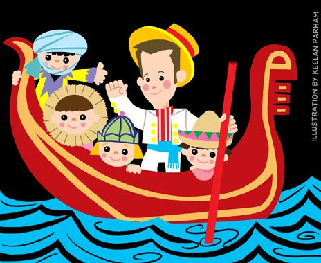 A draw for a magazine client of mine pretty regularly, where the editor has me draw him in various scenes for his column in the magazine. For this issue, he wanted me to do a piece for them in a “Mary Blair-esque” style. No problem! I LOVE Blair’s work. So, I drew him in a “Small World” ride scene, since that ride was inspired by Mary Blair’s designs. I love her simple, bold, yet CUTE designs.
